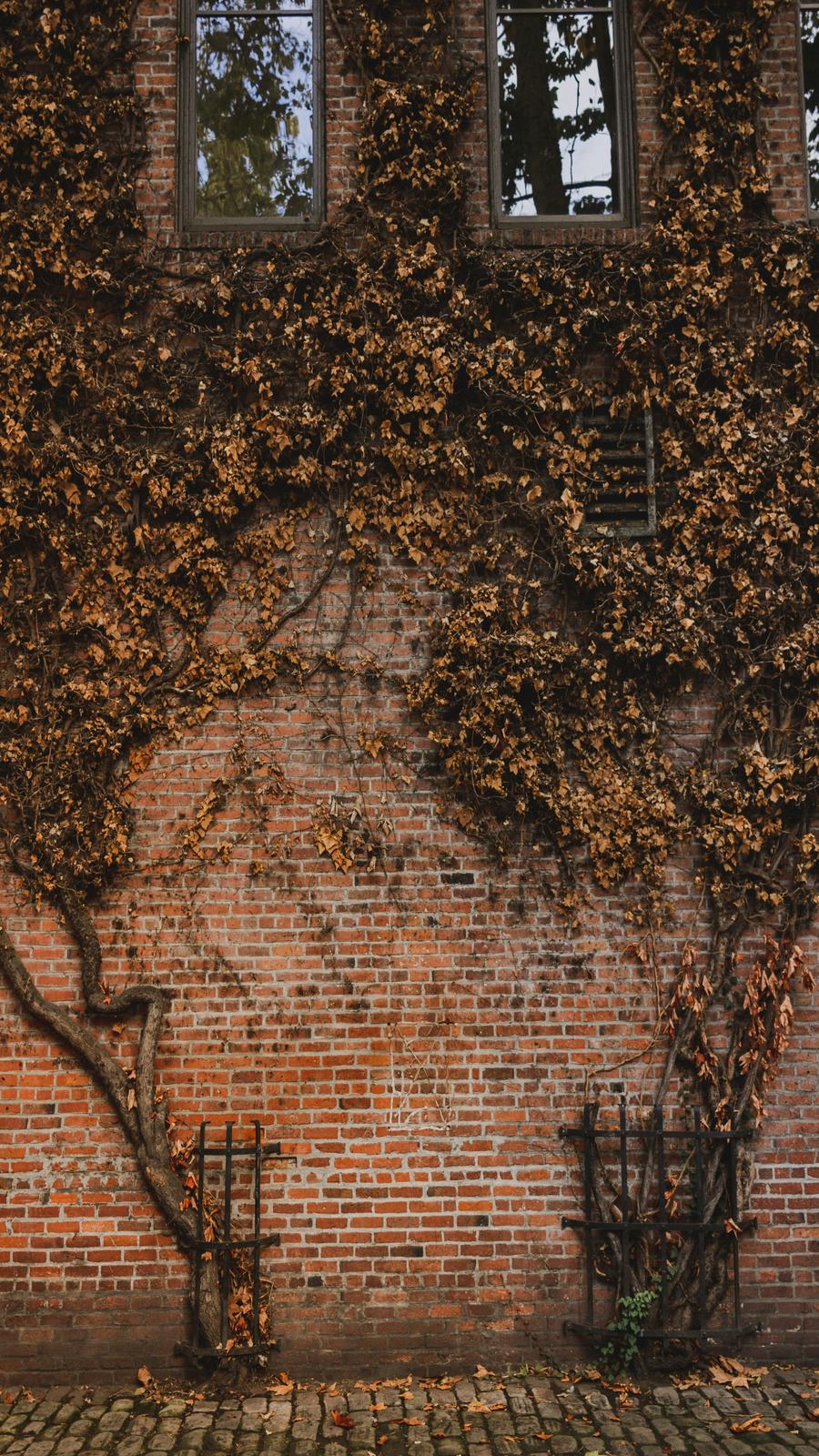 Nature’s Harmony: Brown Tree Near Brick Wall